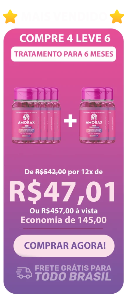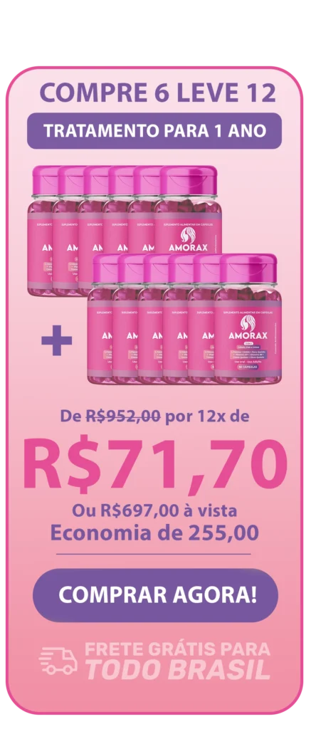 Copyright © 2024 Amorax. Todos os direitos reservados. Todo o conteúdo do site, todas as fotos, imagens, logotipos, marcas, layout, aqui veículados são de propriedade exclusiva do Amoraax. É vedada qualquer reprodução, total ou parcial, de qualquer elemento de identidade, sem expressa autorização. A violação de qualquer direito mencionado implicará na responsabilização cível e criminal nos termos da Lei. Informamos que o Amorax é um tratamento. Seu resultado pode variar de pessoa para pessoa. Os preços dos produtos estão sujeitos a alteração sem aviso prévio. “Este site não é afiliado ao Facebook ou a qualquer entidade do Facebook. Depois que você sair do Facebook, a responsabilidade não é deles e sim do nosso site.